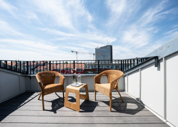 Sie können jedoch auch von der atemberaubenden, ca. 56 m großen Dachterrasse romantische Sonnenuntergänge mit Blick auf Berlins Sehenswürdigkeiten genießen, mit bis zu sechs Personen in dem gut zwei auf zwei Meter großen Whirlpool oder zu zweit in der Sauna entspannen.