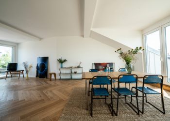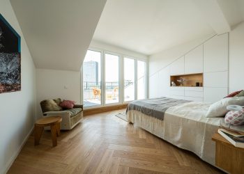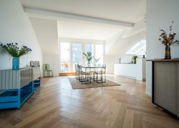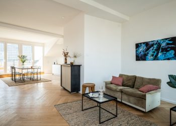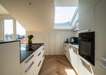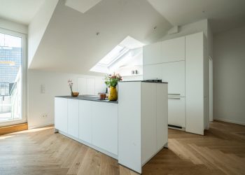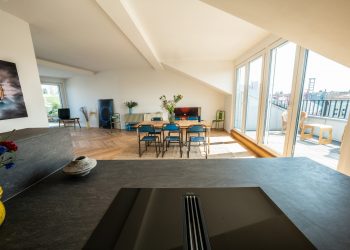 Lassen Sie sich von den absolut hochwertigen Ausstattungsdetails dieses funktionalen Luxus-Erlebnisses im Dachgeschoss eines 5-stöckigen Hauses überzeugen, das Sie bequem über einen Aufzug erreichen.