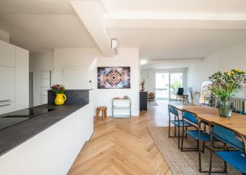 Bodentiefe Fenster erzeugen zusammen mit dem durchdachten Grundriss ein lichtverwöhntes Ambiente und die angrenzende atemberaubende Dachterrasse, sowie eine von zwei Loggien garantieren ausreichend Platz für rauschende Partys.